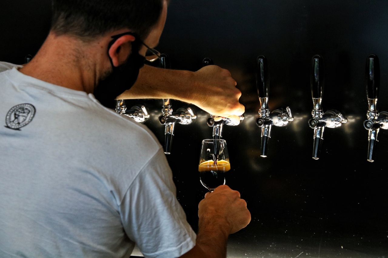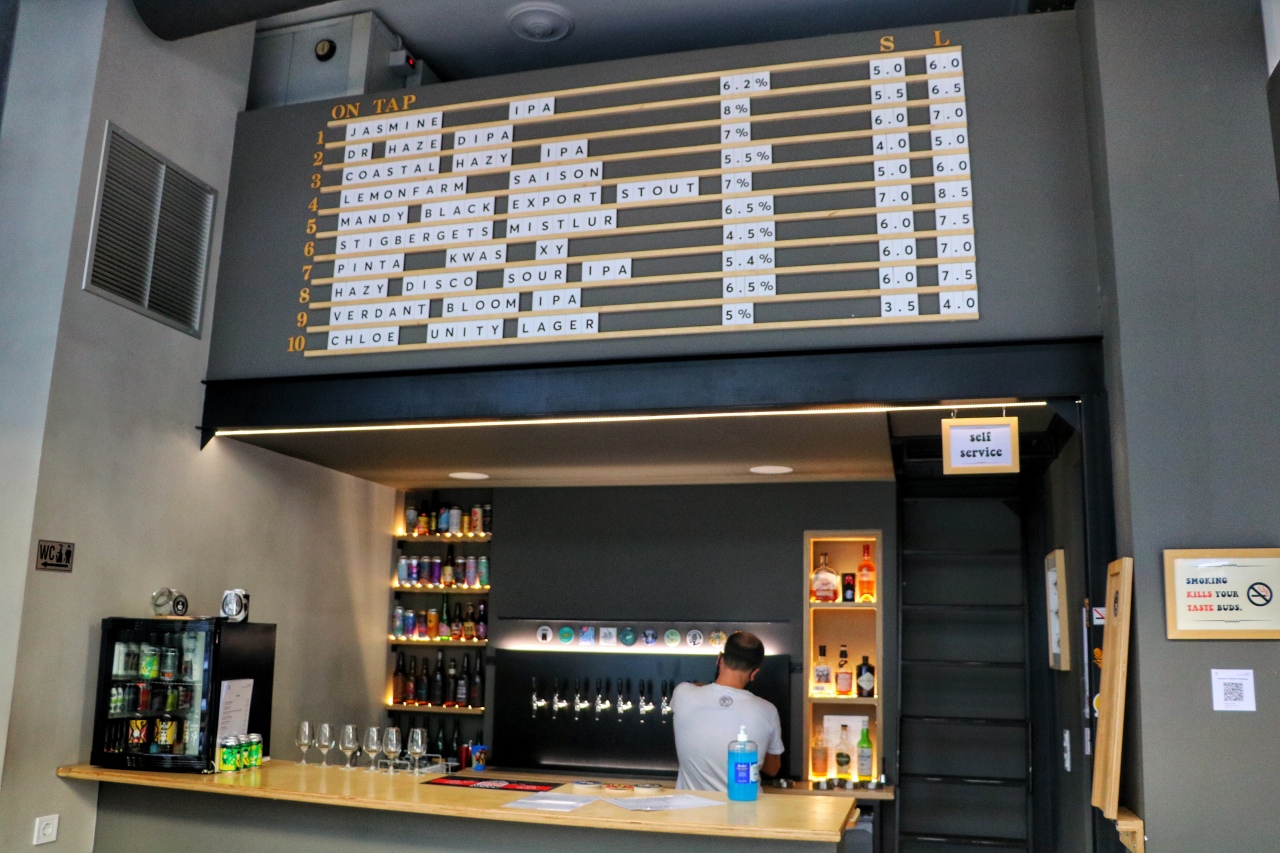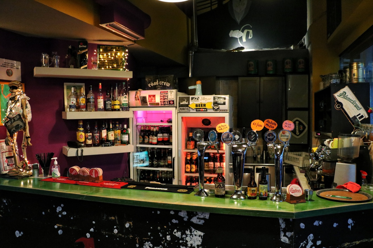 Taproom browaru kontraktowego Strange Brew, który polscy fani piwa mogą kojarzyć z kooperacji z Pintą w ramach serii Hazy Disco. Jest to malutka, ale przytulna knajpa, w której przestrzeń wykorzystano do maksimum – tymczasowe mini stoliki powstają nawet ze znajdujących się przed lokalem słupków chodnikowych. Atmosferę dopełnia świetny dobór muzyki. Na kranach znajdziemy 10 piw, z których większość to produkty Strange Brew, ale nie zabrakło kilku gościnnych (m.in. polskie akcenty w postaci wspomnianej Pinty). Deska degustacyjna, choć nie widnieje w oficjalnym menu, została bezproblemowo nalana przez barmana. Ten, jak się okazało, był współwłaścicielem oraz jednym z piwowarów i chętnie wdawał się w rozmowy na temat browaru czy całej ateńskiej sceny, a jak wiadomo, osoby bezpośrednio związane z serwowanym piwem to zawsze ogromny plus przy odwiedzinach jakiejkolwiek knajpy. A co jeśli chodzi o jakość? Na 7 pozycji z deski, pięć było bardzo udanych, a dwie już nie za bardzo – chyba głównie dlatego, że spędziły nieco za dużo czasu na kranie. Bilans i tak dobry, a trzeba mieć jeszcze na uwadze, że knajpy w tym czasie miały ograniczone godziny działania przez covidowe restrykcje, więc tym bardziej można przymknąć na to oko.
