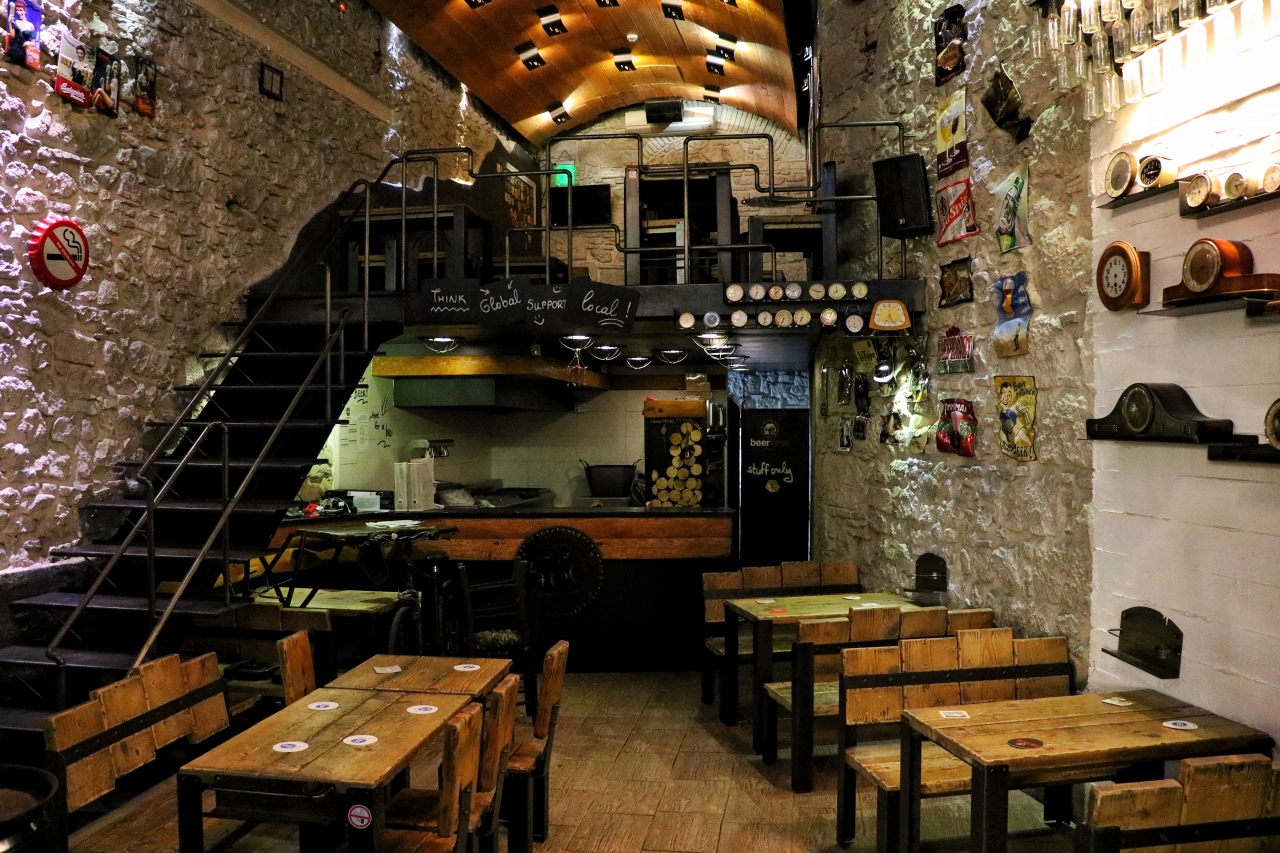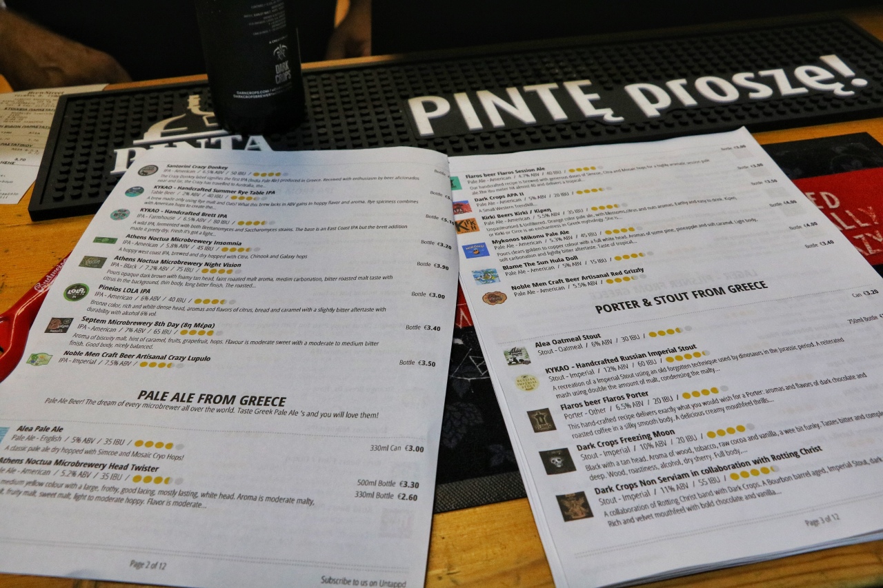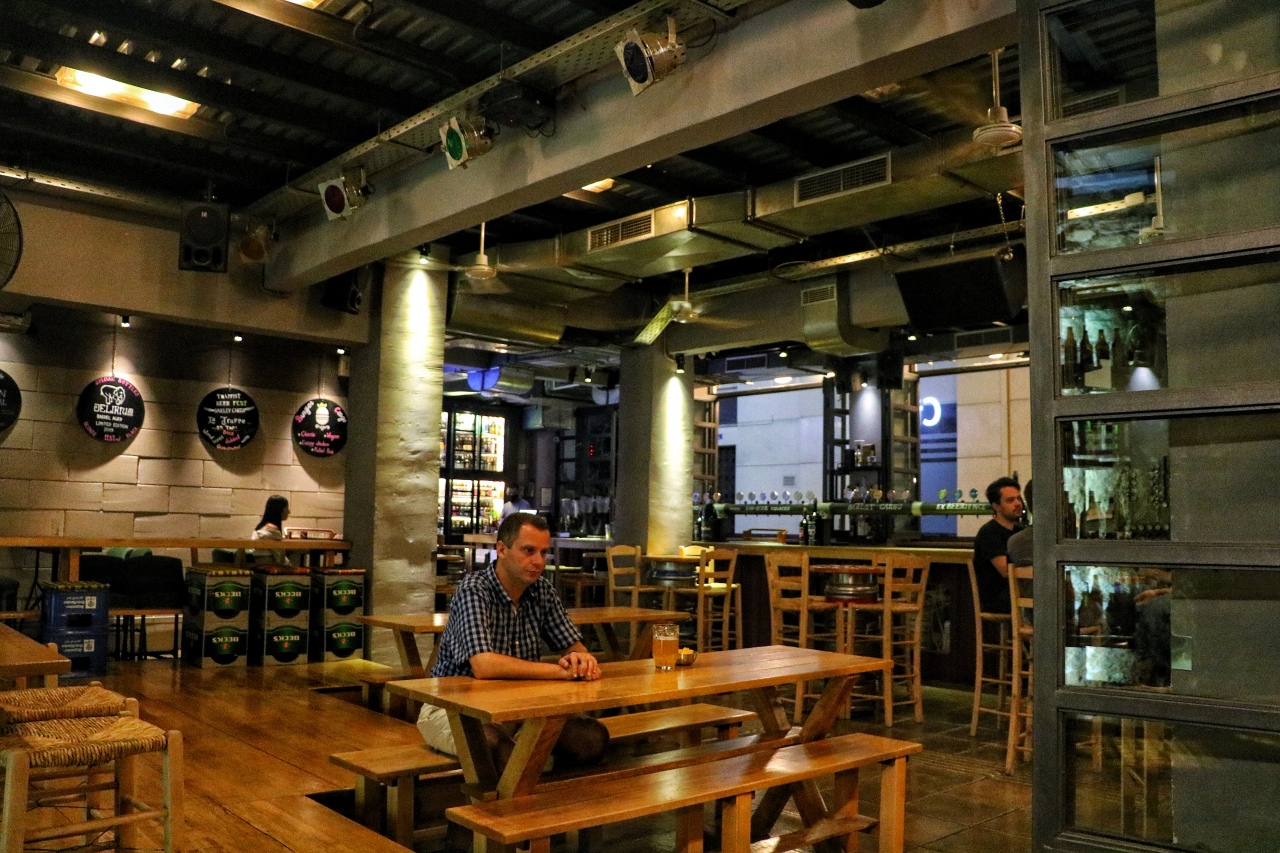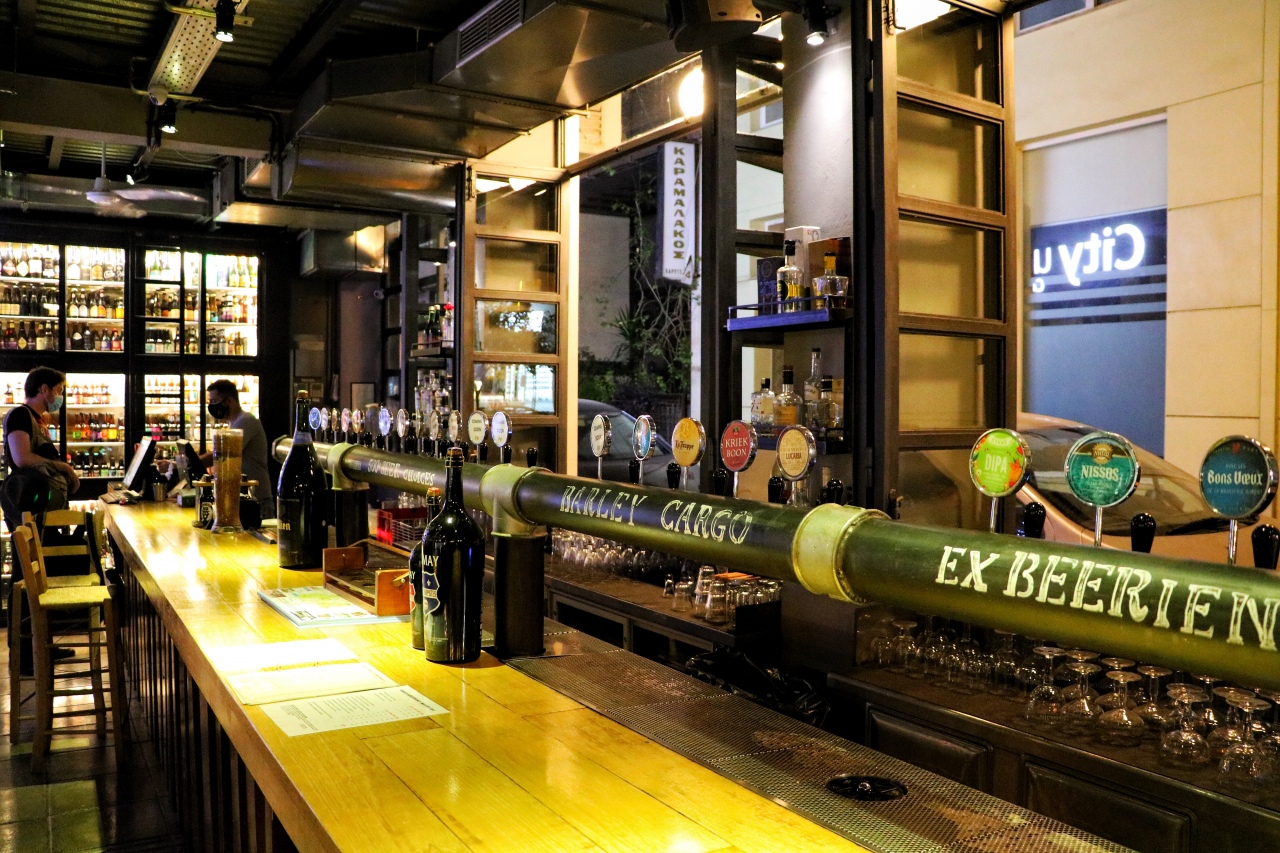 Spory multitap z kilkoma stolikami na zewnątrz, w którym piwo leje się z 23 kranów, choć 8 z nich w chwili wizyty było nieczynnych. Do tego ogromna lodówka z butelkami, zarówno z Grecji jak i całego świata. Dodatkowym plusem jest tanie i sensowne jedzenie, serwowane w formacie więcej niż przekąski, ale mniej niż pełnego posiłku. Mowa tu o rzeczach takich jak skrzydełka, frytki, sałatki czy boczniaki. Niestety ceny piwa stanowią przeciwieństwo cen jedzenia i są wyraźnie zawyżone w porównaniu do innych lokali w Atenach. Jeszcze jeden minus to klimat, a raczej jego brak. W środku zaledwie parę osób, barmani znudzeni i zajęci sobą i całokształt jakiś taki bez polotu. Niewykluczone jednak, że po prostu trzeba trafić tutaj we właściwym czasie.