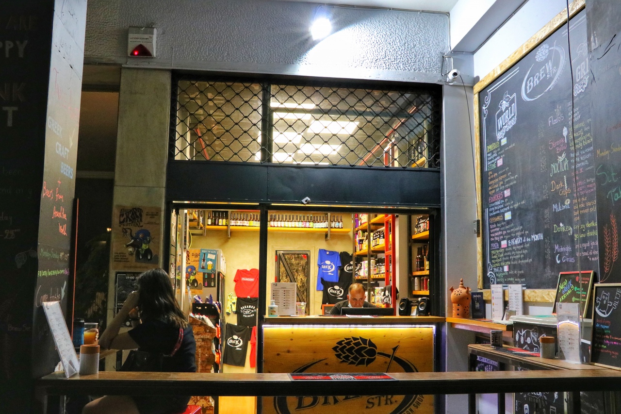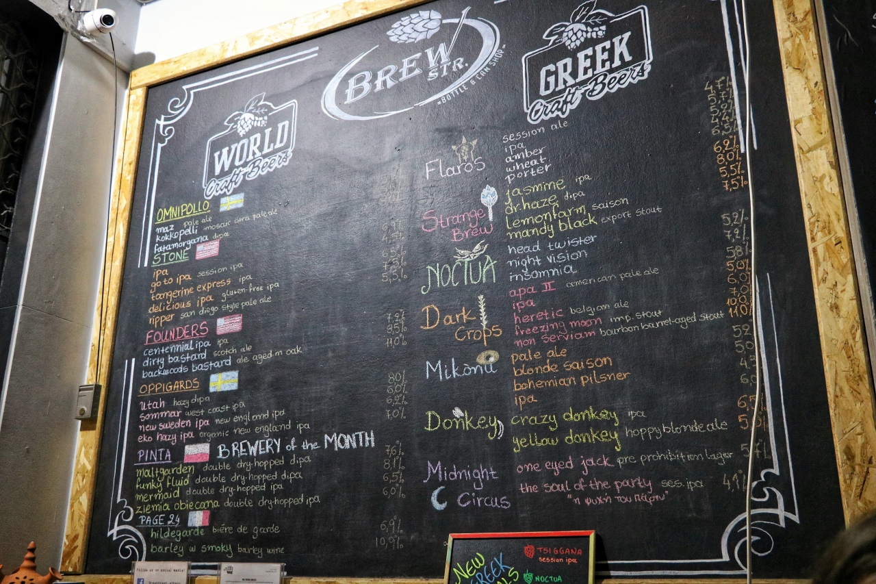 Nietypowy sklep specjalistyczny, przypominający bardziej kiosk. Nie wejdziemy do środka, ale do dyspozycji mamy rozpiskę z całym asortymentem i sprzedawca przez ladę podaje wybrane pozycje. A to właśnie asortyment jest największym walorem tego miejsca. W Brew Str znajdziemy piwa chyba wszystkich wartych uwagi greckich browarów, w tym wiele limitowanych wypustów, czy to leżakowanych w beczkach, czy z dzikimi drożdżami. Przed lokalem znajduje się dosłownie kilka miejsc siedzących, umożliwiających także spożycie na miejscu. Niestety decydując się na tę formę konsumpcji, musimy zadowolić się plastikowymi kubeczkami, gdyż nie uświadczymy żadnego szkła. Jest to największy mankament, biorąc pod uwagę, że można spróbować tutaj piw naprawdę godnych uwagi, które zasługują na nieco lepszą oprawę. Sklep ten mimo nieszablonowej formy jest zdecydowanie godny odwiedzin, a jeśli ktoś chce się zaopatrzyć w butelki na wynos, to będzie strzałem w dziesiątkę.
