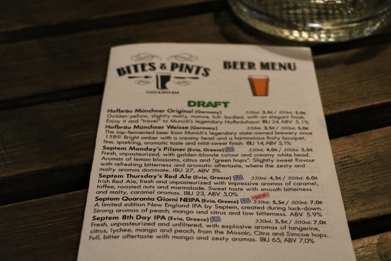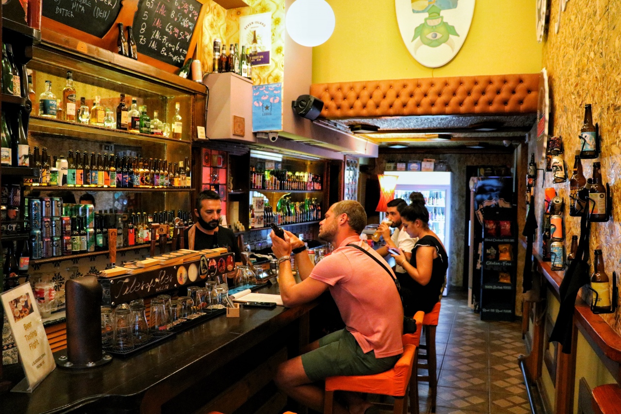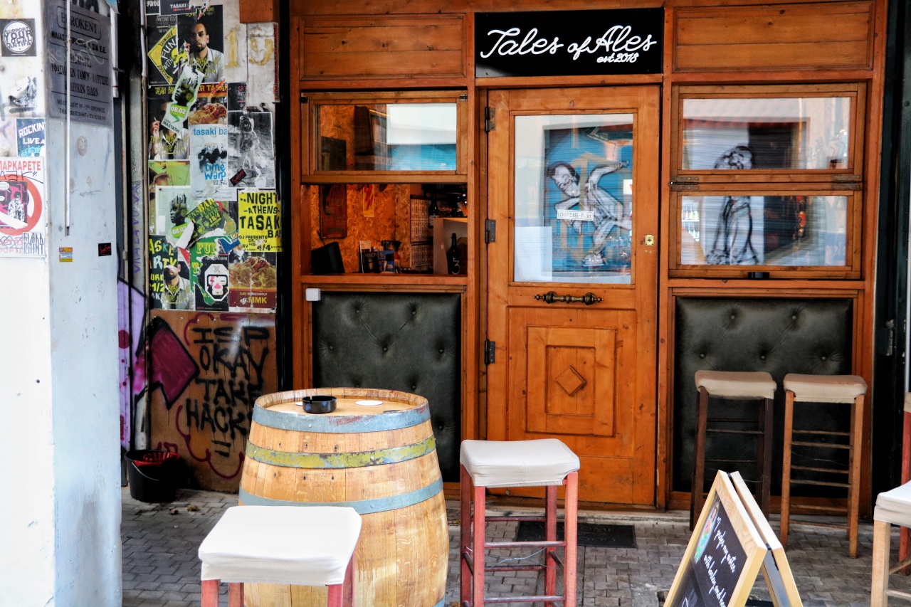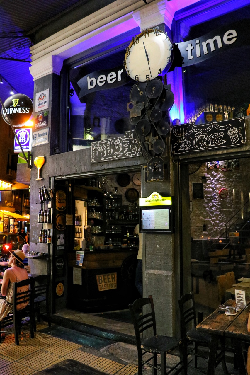 Największe pozytywne zaskoczenie wyjazdu. Miejsce, o którym niewiele znalazłem w internecie, a znacznie przerosło moje oczekiwania. Można je sklasyfikować jako coś pomiędzy pubem, a sklepem z butelkami. Ze względu na niewielkie rozmiary, w środku usiądziemy jedynie przy barze, z kolei na zewnątrz, przy bardzo cichej ulicy, znajdują się 3 czy 4 stoliki zrobione z beczek. Może to powodować pewne problemy z wolnym miejscem, ale rzeczona kameralność ma pewien urok. Lokal broni się jednak przede wszystkim klimatem i obsługą. Barman był autentycznie zafascynowany światem piwa, bardzo chętnie wdawał się w rozmowy i widać było, że czerpie z tego przyjemność. W dodatku świetnie orientował się w lokalnej scenie i potrafił wskazać pozycje rzeczywiście godne uwagi. Piwo leje się z 6 kranów, a oprócz tego do wyboru mamy zatrzęsienie butelek, w tym kilka wartych poznania greckich mikrobrowarów, których nie widziałem nigdzie indziej. Całość dopełniają dobre ceny i położenie nieopodal ścisłego centrum. Zdecydowanie polecam, zarówno do spożycia na miejscu, jak i do zaopatrzenia się w coś na drogę.